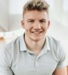 A woman stands against a plain red background, wearing a vibrant saree with intricate patterns, adorned with statement earrings and multiple bangles. The saree is primarily dark blue with metallic details, complemented by a pink border and a green pallu.